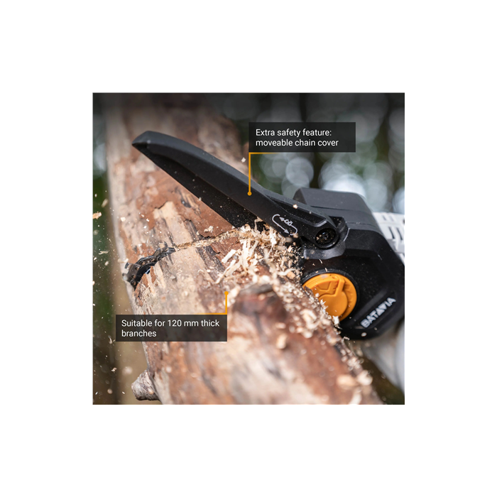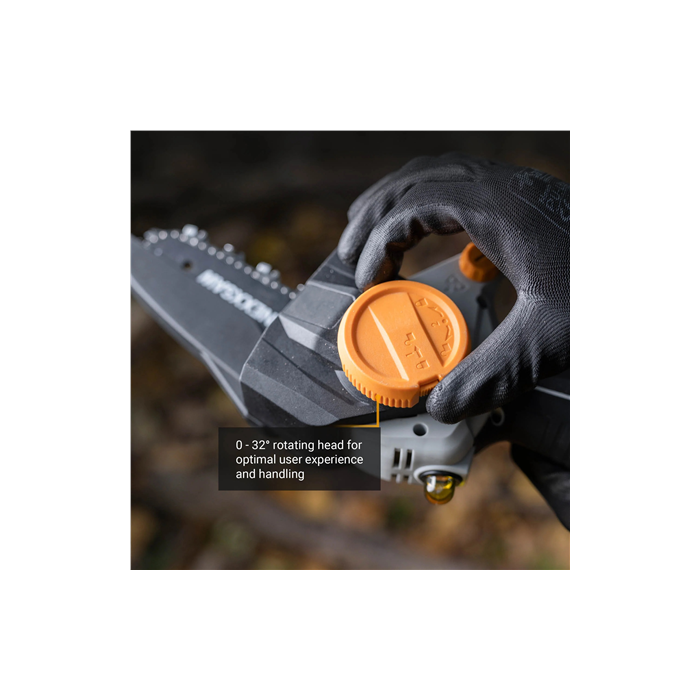 | Muud funktsioonid | Rotating head (0° to 32°) offers flexibility for all pruning tasks; Manual oiling system enhances durability of chain and motor; Cuts through wood up to 12 cm thick with powerful 18V motor |
