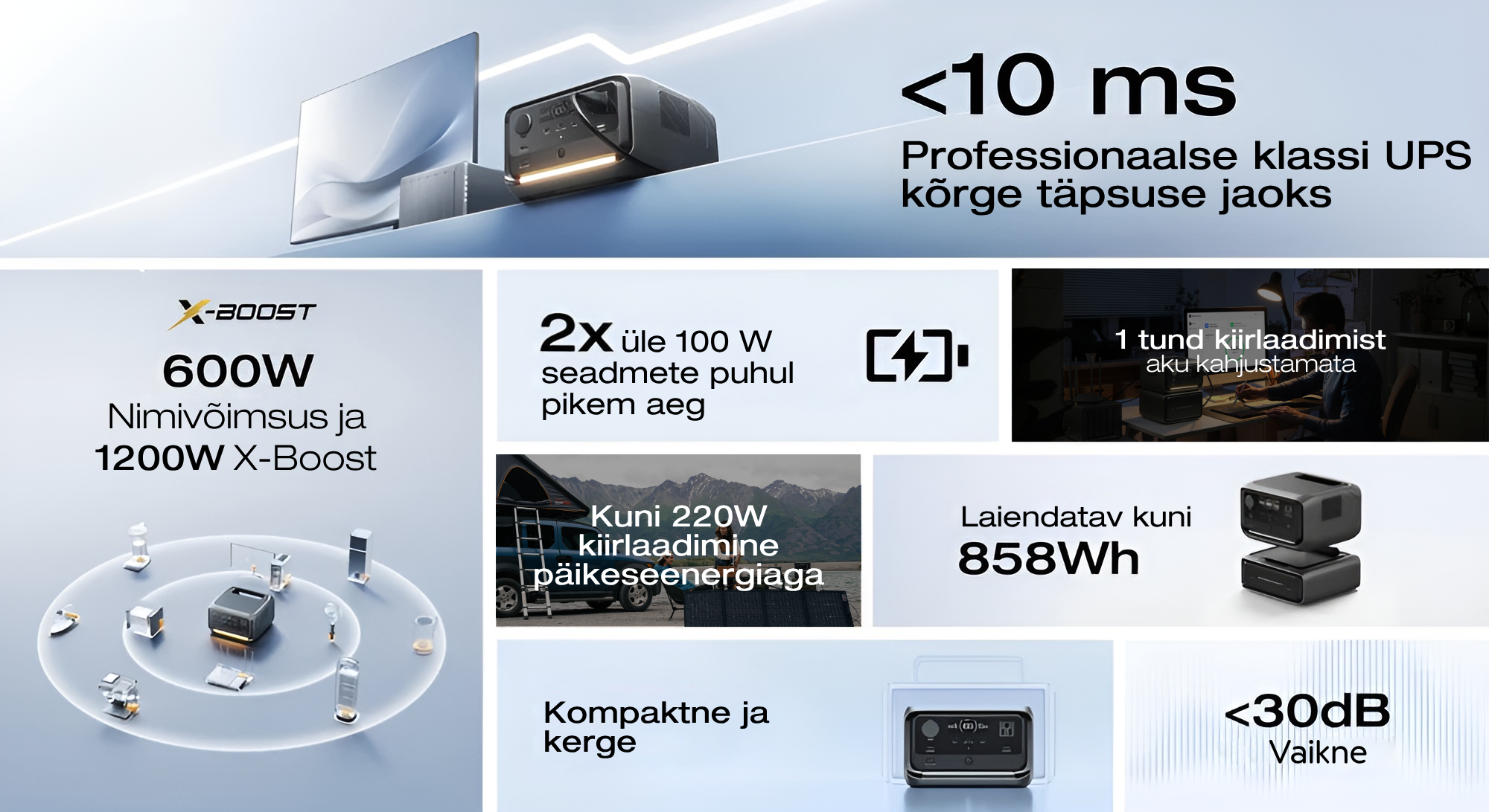 RIVER 3 Plus tagab esmaklassilise kaitse <10 ms ümberlülitusega, turvates tundlikke seadmeid kodukontoris või arvutimängude mängimise ajal voolukatkestuste korral