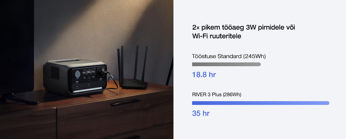 Haldab hästi elektrikatkestusi ja pikendab väljasoleku aega