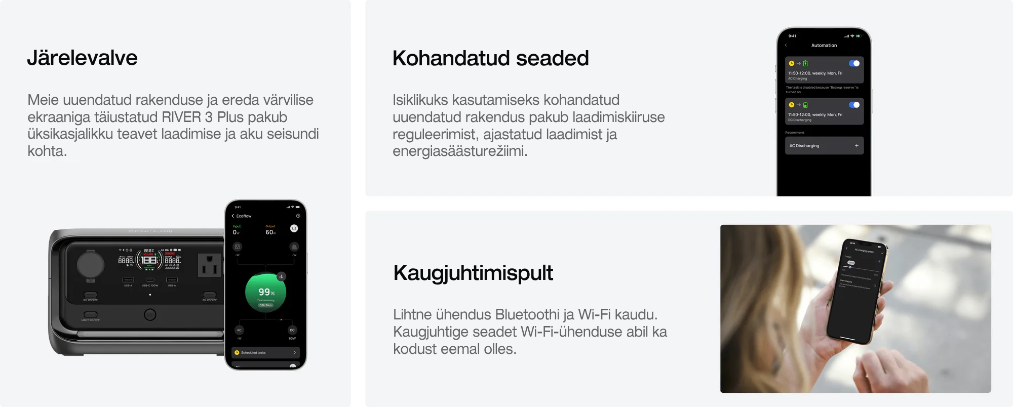 Murrangulise X-GaNPower tehnoloogiaga toob RIVER 3 Plus valdkonda uusi tuuli kompaktsete ja vaiksete akudega, mis on loodud pikendama väikeste elektroonikaseadmete tööiga. GaN-i suurepärase energiatõhususe abil pakub RIVER 3 Plus väikese võimsusega seadmetele kuni kaks korda pikema tööea, andes kaasakantavale võimusele uue tähenduse.